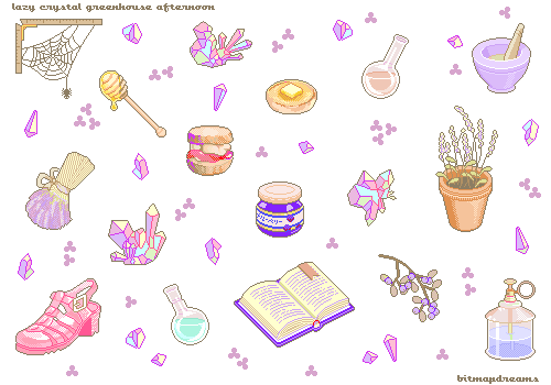 Honey SpoonBlueberry JamJelly SandalJuniper BerryDried LavenderMortar and PestleScone with Jam and Clotted CreamWatering Canall artwork is copyright bitmapdreams 2016, and is for personal use only. please ask me before using my work!