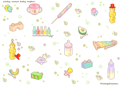 Lollipop StickRattle PlushieLemon Ring PopMint Ring PopRose Ring PopSippy CupCandy Drink Wax BottlesXylophoneall artwork is copyright bitmapdreams 2016, and is for personal use only. please ask me before using my work!